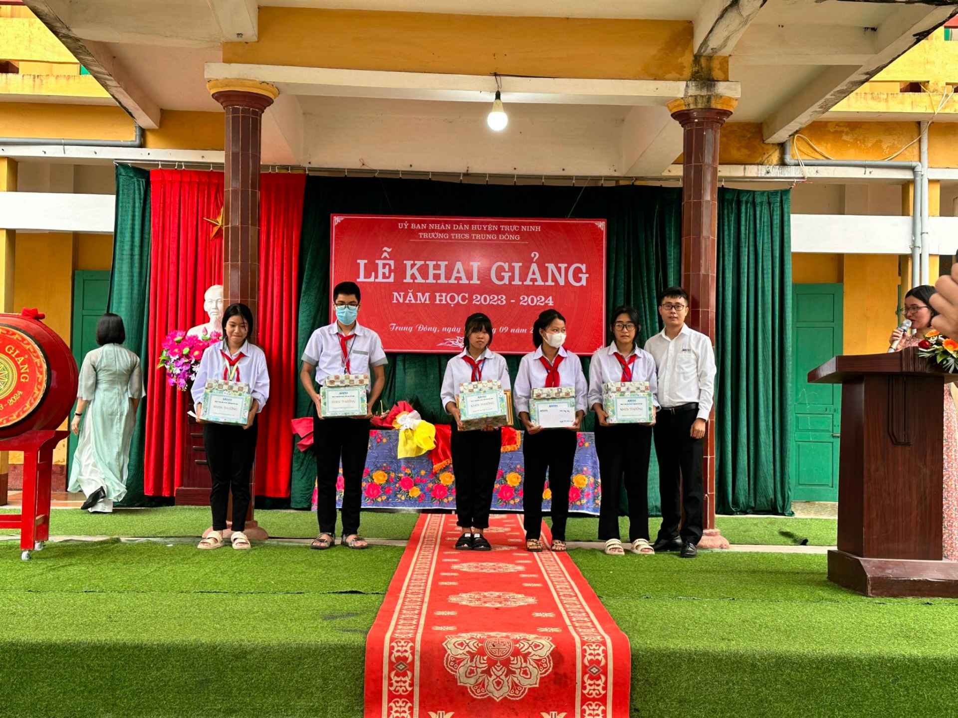 Hoà trong không khí tưng bừng Khai giảng năm học mới 2023 - 2024, Công ty TNHH Đầu tư Phát triển Mega Việt Nam đã trao những chiếc ghế đá tặng nhà trường và 60 phần quà đến các em nhỏ bao gồm xe đạp, vở, đèn học, bằng khen với tổng giá trị gần 80 triệu đồng. Đại diện Công ty cùng các thầy cô trong Ban Giám hiệu nhà trường đã trao các phần quà đến các em. Mỗi món quà trao tay là một niềm tin được lan tỏa, niềm tin các em có thể khắc phục những khó khăn trong cuộc sống để vững bước tới trường và tiếp thu kiến thức. Món quà sẽ thay lời động viên, nhắc nhở, khuyến khích các em học tập vì có những tổ chức như chúng tôi luôn đồng hành, tạo động lực cho các em.