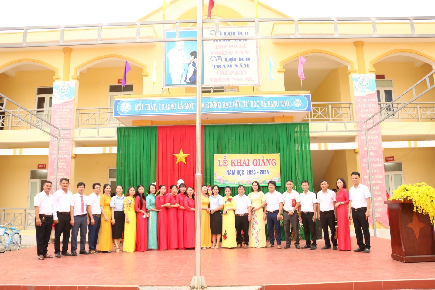 Hình ảnh Đại diện Công ty cùng thầy cô giáo tại trường THCS Mai Lâm