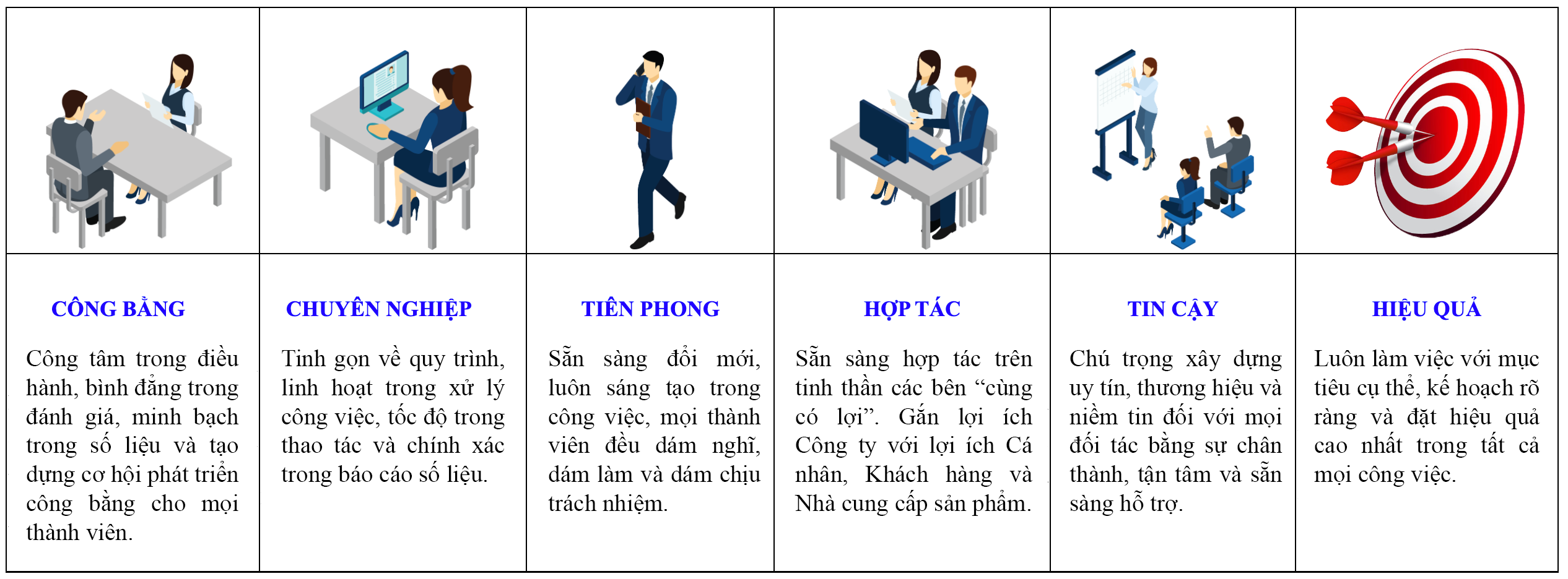 “CÔNG BẰNG – CHUYÊN NGHIỆP – TIÊN PHONG – HỢP TÁC – TIN CẬY – HIỆU QUẢ”